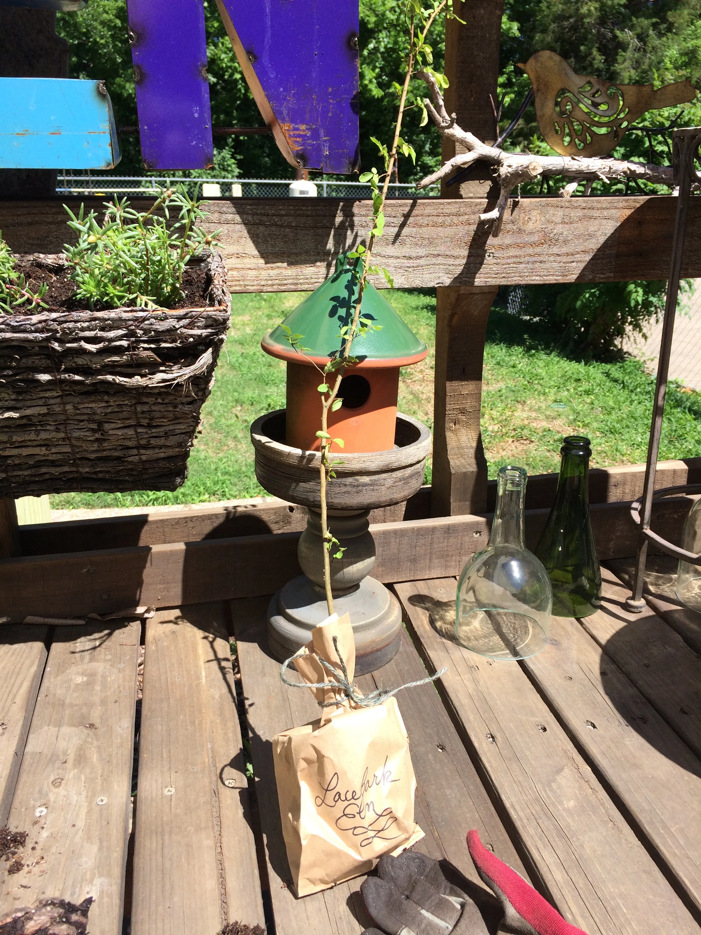 FIRST of all, really, every day should be Earth Day. Really. But I get it. We need a day to remind us how important our wonderful world is, and how we should be taking better care of it. I wouldn't call myself a tree-hugger, but I have definitely changed my ways in the last several years. Oh, I'm still guilty of so many non-eco things, but I make a lot of strides now to curb that. We do a good amount of composting for a suburban family. We recycle. (I even bring home the recycles from my office as our building isn't set up to collect them.) We try to conserve energy and water, and reuse so many things. But there is always room for improvement. We will keep doing our very best. We were out visiting some of our favorite haunts this morning, and one place we enjoy going to is a wonderful nursery near the Bishop Arts area of Dallas called Brumley Gardens. It is such a cool place. You can walk around forever and not see everything. And they carry a wide array of plants, and have some of the best varieties of succulents around. Sure, I shop at the big box stores for garden supplies and plants as well, but I really enjoy going here. There's just something very nice about this place. They strive to provide organic products; hey, they can even completely outfit your chicken coop! They help everyone feel a little more sustainable. Okay, I didn't mean for this to become an ad for Brumley's, but I wanted to tell you that as we were checking out this morning, the employee offered us a free tree.